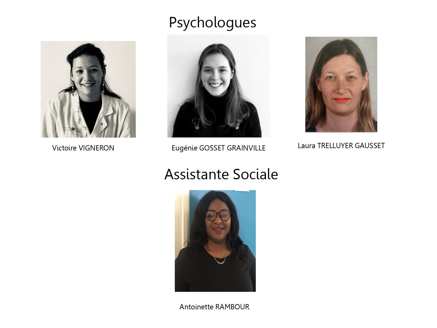 Mmes Laura Treluyer Gausset (01 44 73 67 97), Eugénie Gosset Grainville (01 44 73 51 23) et Victoire Vigneron (01 85 34 00 43) psychologues, pourront, si vous le désirez, faire connaissance avec vous et votre enfant. Elles sont à votre disposition pour vous écouter et répondre à vos questions.